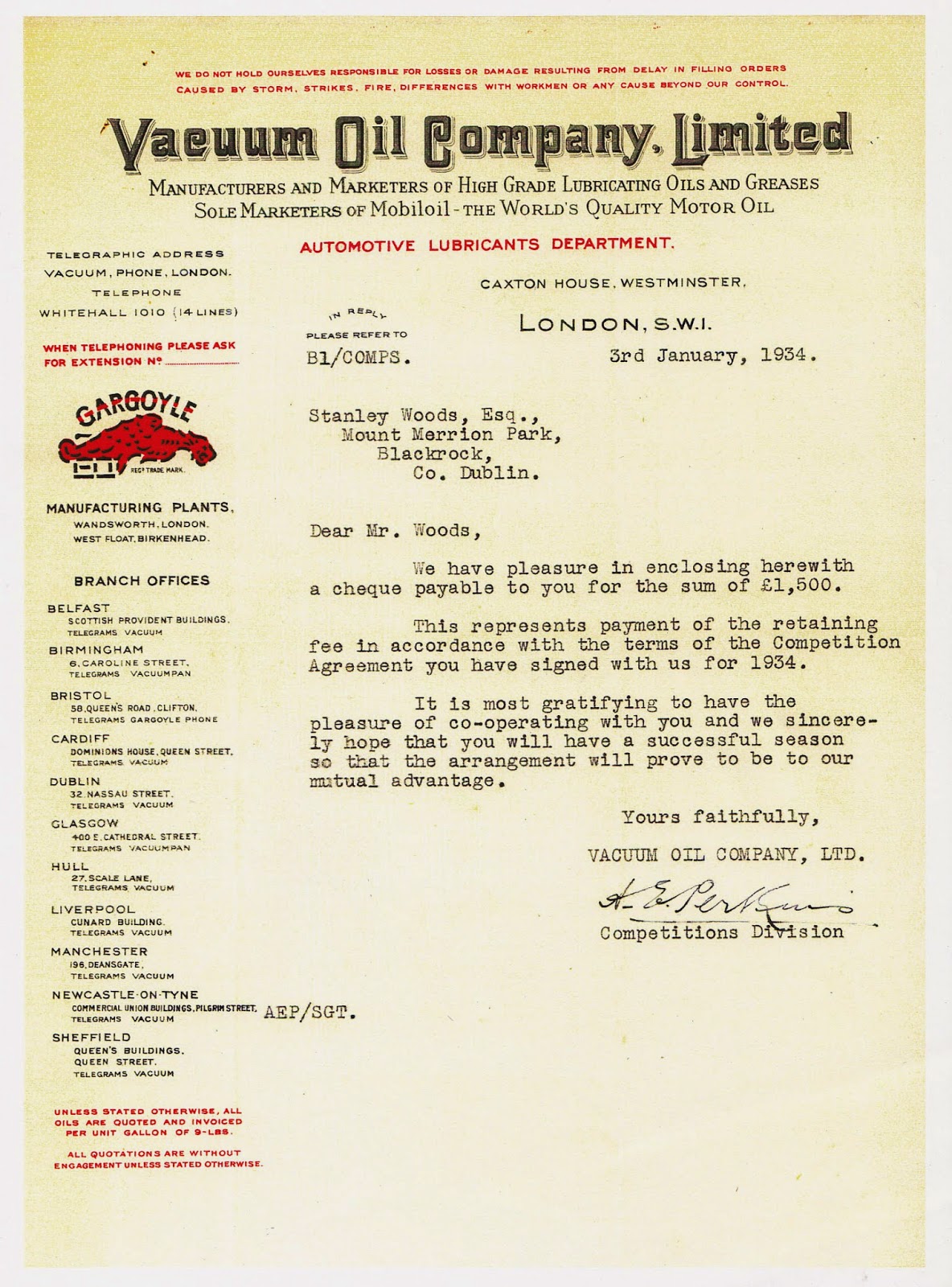 His retainer with Vacuum oil in 1934 was £1500 for the year...